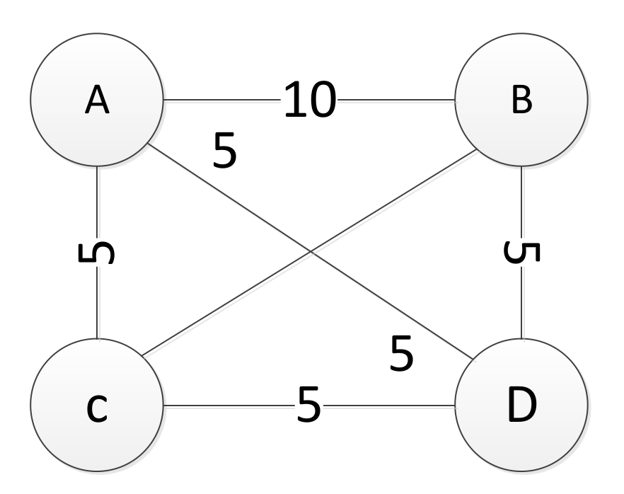For 4 cities we notice that the difference in the routes between a solution and a immediate neighbour is 2 edges.
