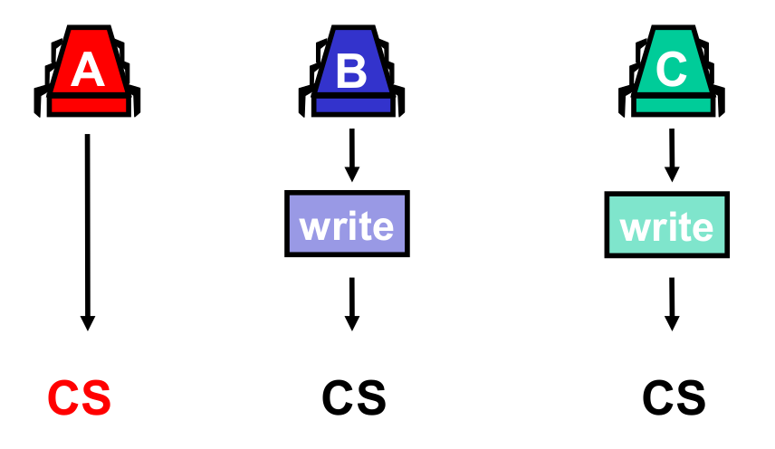 - Which contradict the assumption that A has the earlier label ∴ impossible, ∴ Bakery satisfies mutual exclusion.