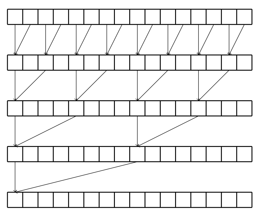 A[pow(2,n)*i] += A[pow(2,n)*i+pow(2,n-1)]